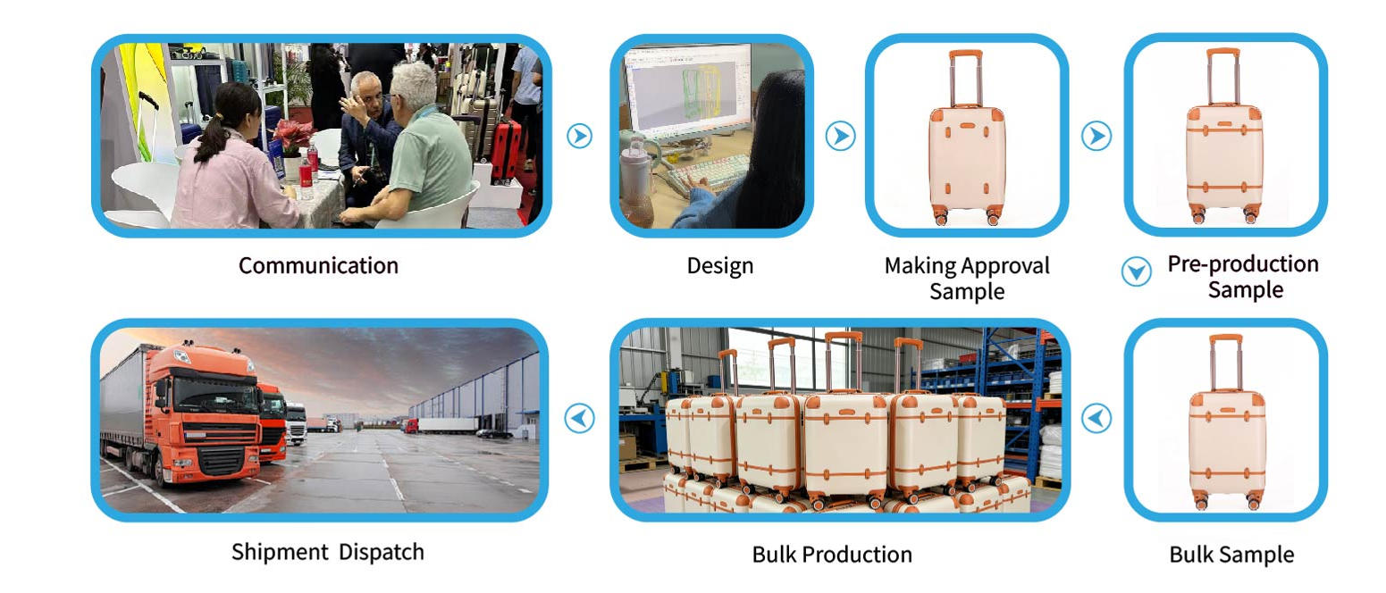 A: Наш минимальный объем заказа для базовых моделей багажа, изготовленных на заказ, достаточно гибкий и подходит для предприятий разного масштаба. Для полностью индивидуальных проектов с использованием эксклюзивных пресс-форм мы устанавливаем разумный минимальный объем заказа, чтобы обеспечить эффективность и экономичность производства.